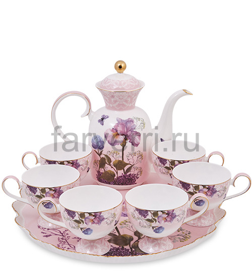 Чайный набор ''Утро в саду'' (чайник+6 чашек на подносе)