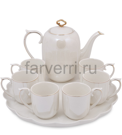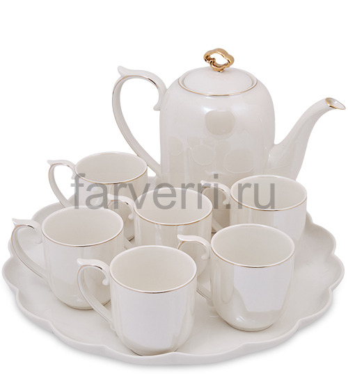 Чайный набор ''Жемчужное утро'' (чайник+ 6 чашек на подносе)
