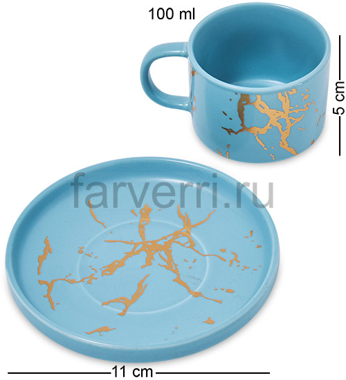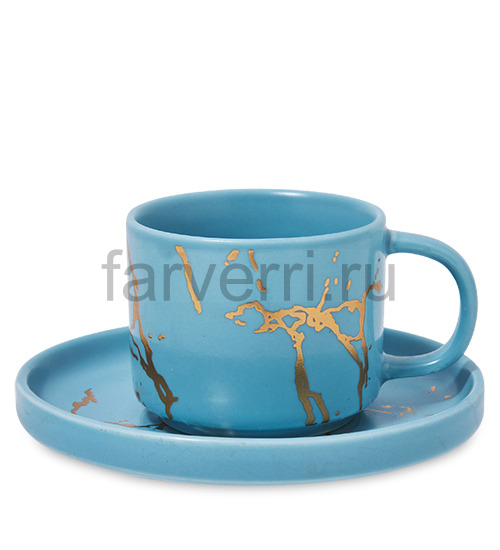 Набор из 6 чашек с блюдцами 100 мл ГОЛУБОЙ МРАМОР