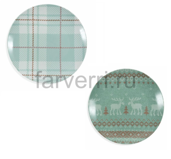 Набор состоит из обеденной тарелки 27 см и десертной тарелки 19 см.