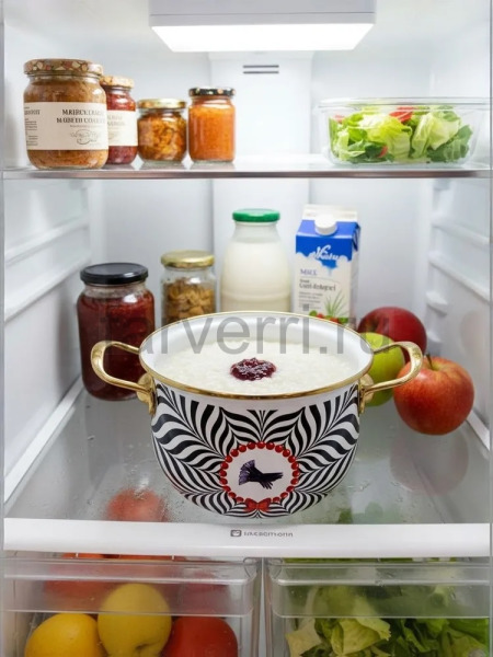Посуда изготовлена из высококачественной сталии покрыта 3-х слойной стеклоэмалью с ионами серебра. Подходит для всех типов плит, включая индукционные, можно мыть в посудомоечной машине.