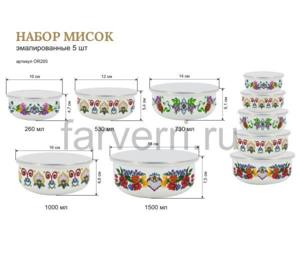 Набор из 5-ти мисок для хранения ORNAMENTUM