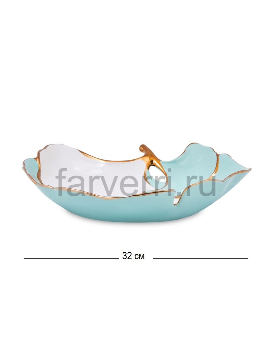 Декоративное блюдо в форме листа 32 см, коллекция Голубой топаз