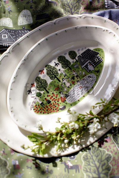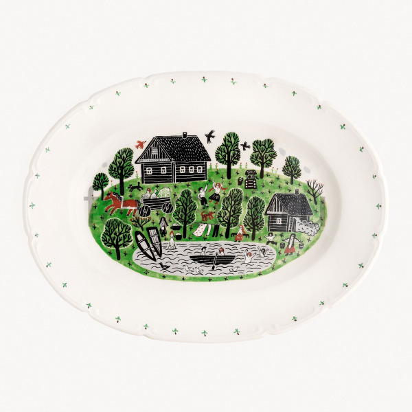 Блюдо овальное 36 см "Уткина Деревня Огород"