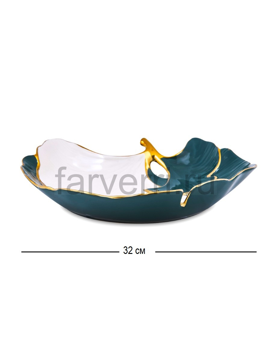 Декоративное блюдо в форме листа 32 см, коллекция Зеленый агат