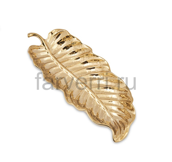 Декоративное блюдо в форме листа 36,5 см, коллекция Золотая линия