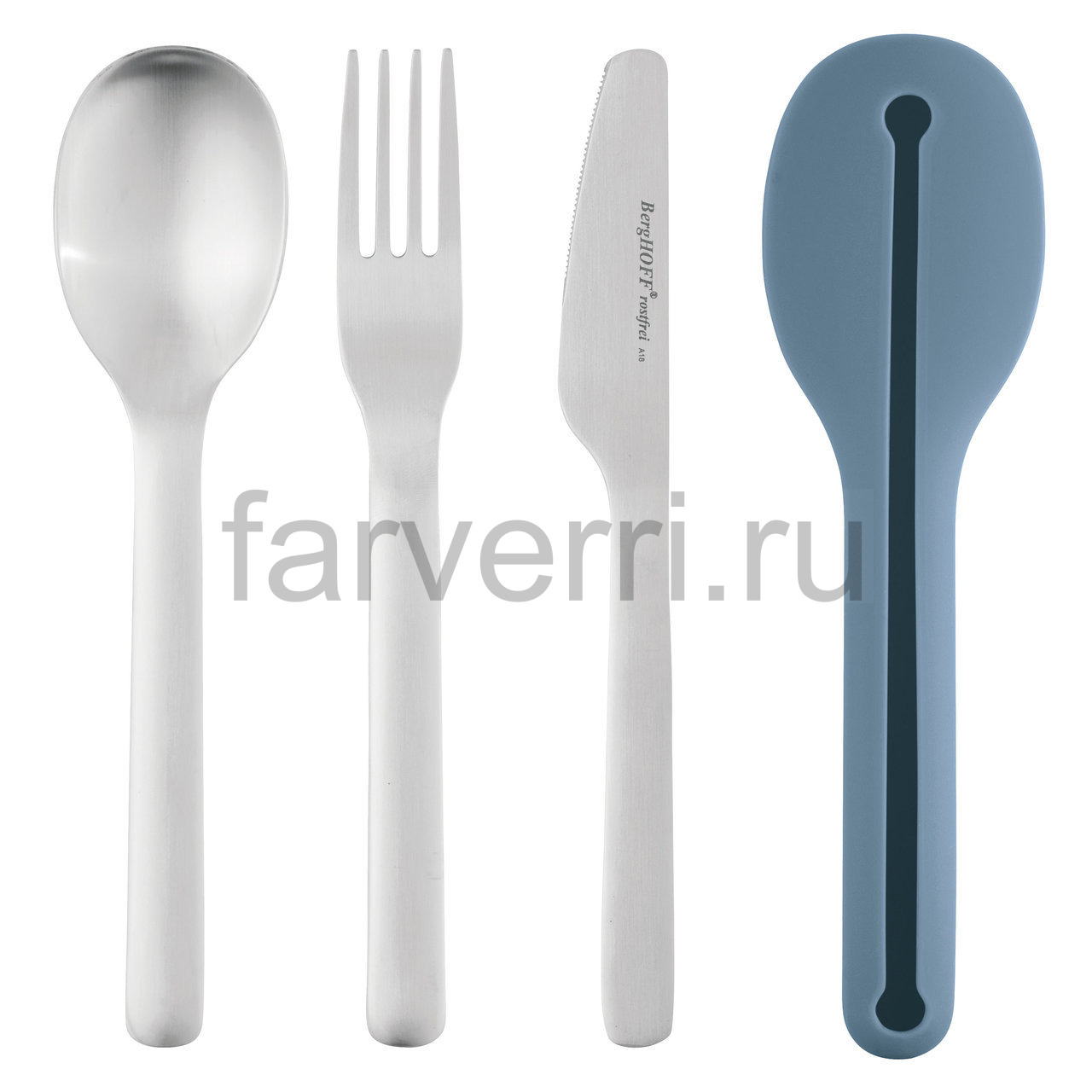1шт набор столовых приборов в силиконовом чехле (вилка, ложка, нож 18см)