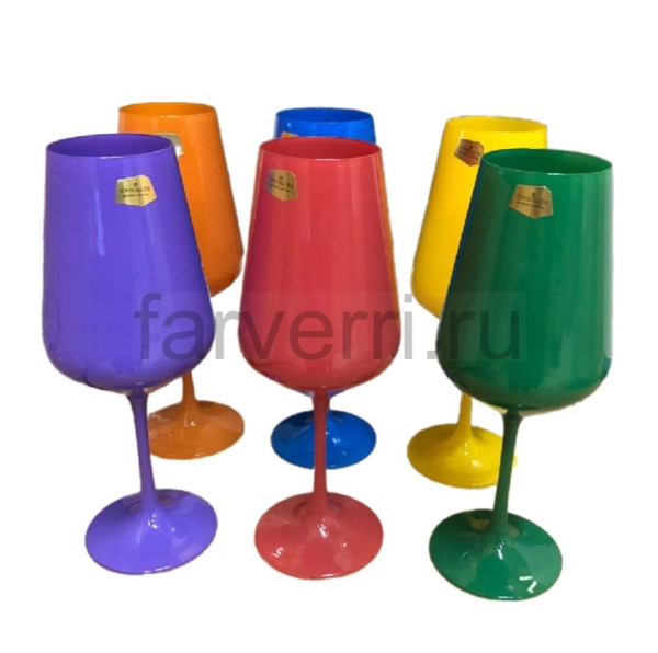 Набор бокалов для вина 450 мл "Сандра", декор "6 ярких цветов" (6 шт)