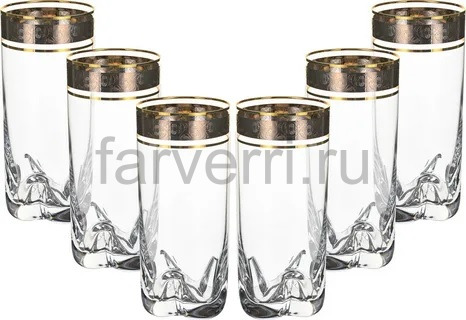 Стакан для воды "Барлайн Трио" 300 мл (набор 6 шт), декор "Панто платина, золото"
