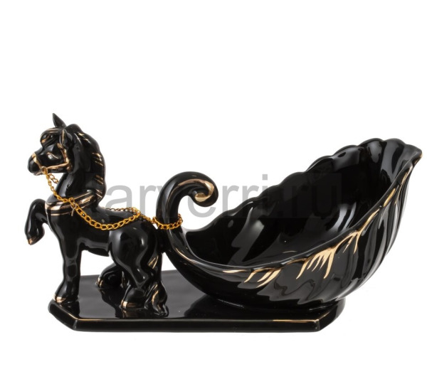 Фигурка декоративная "Лошадка" с подсвечником, L17 W7 H12 см черн.