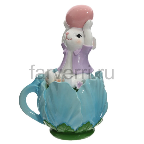 Фигурка декоративная "Заяц в чашке", H12,5 см