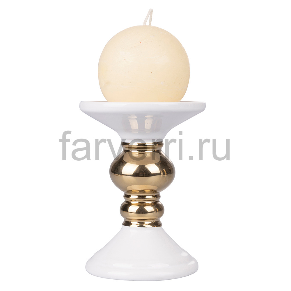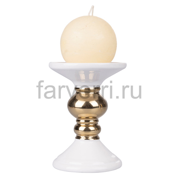 Подсвечник декоративный, фарфор, серия "Порт", белый с золотом, высота 14см