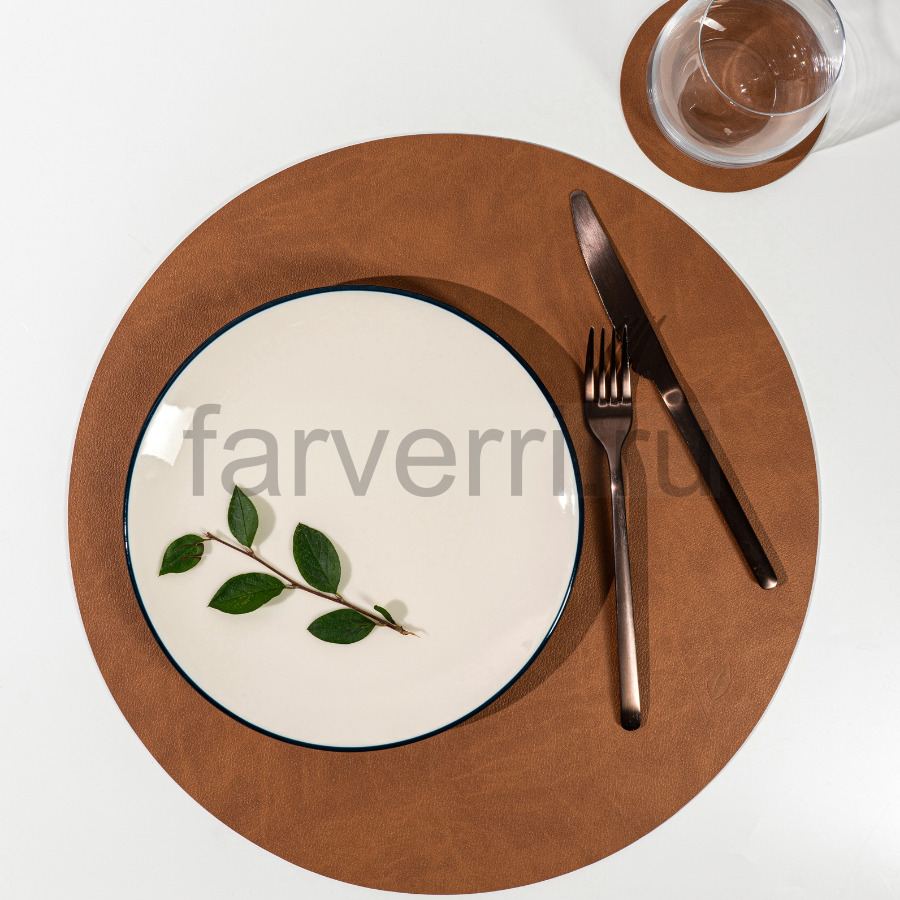 Подстановочная салфетка круг D38 см, натур. нат. кожа