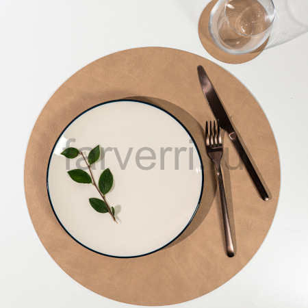 Подстановочная салфетка круг D38 см, песоч. нат. кожа