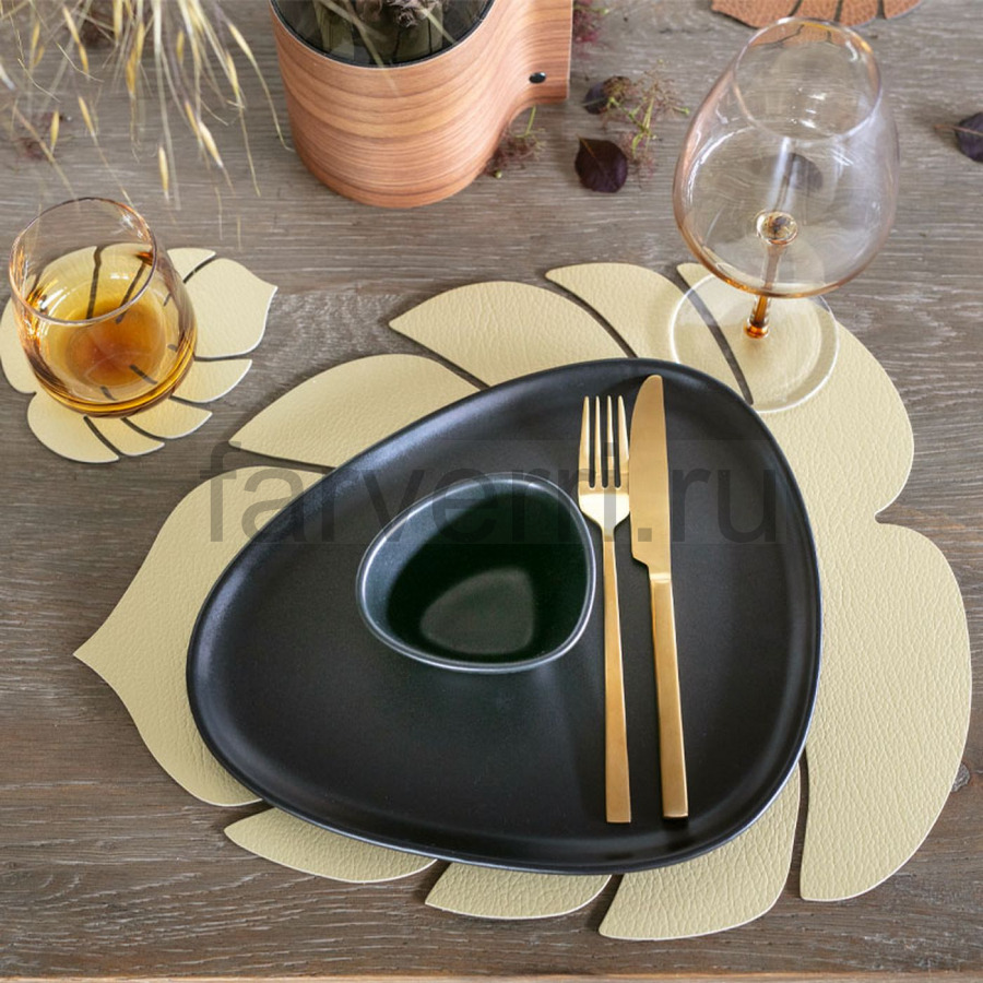 Подстановочная салфетка лист монстеры 42х35 см, толщина 1,6мм, нат.кожа