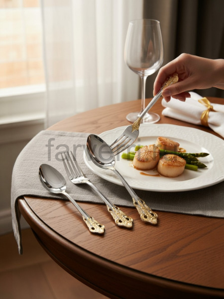Набор столовых приборов FarVerri - это элегантный и статусный акцент Вашей сервировки, способный моментально внести торжественную нотку в застолье, а также отличный подарок значимым Вам людям.
