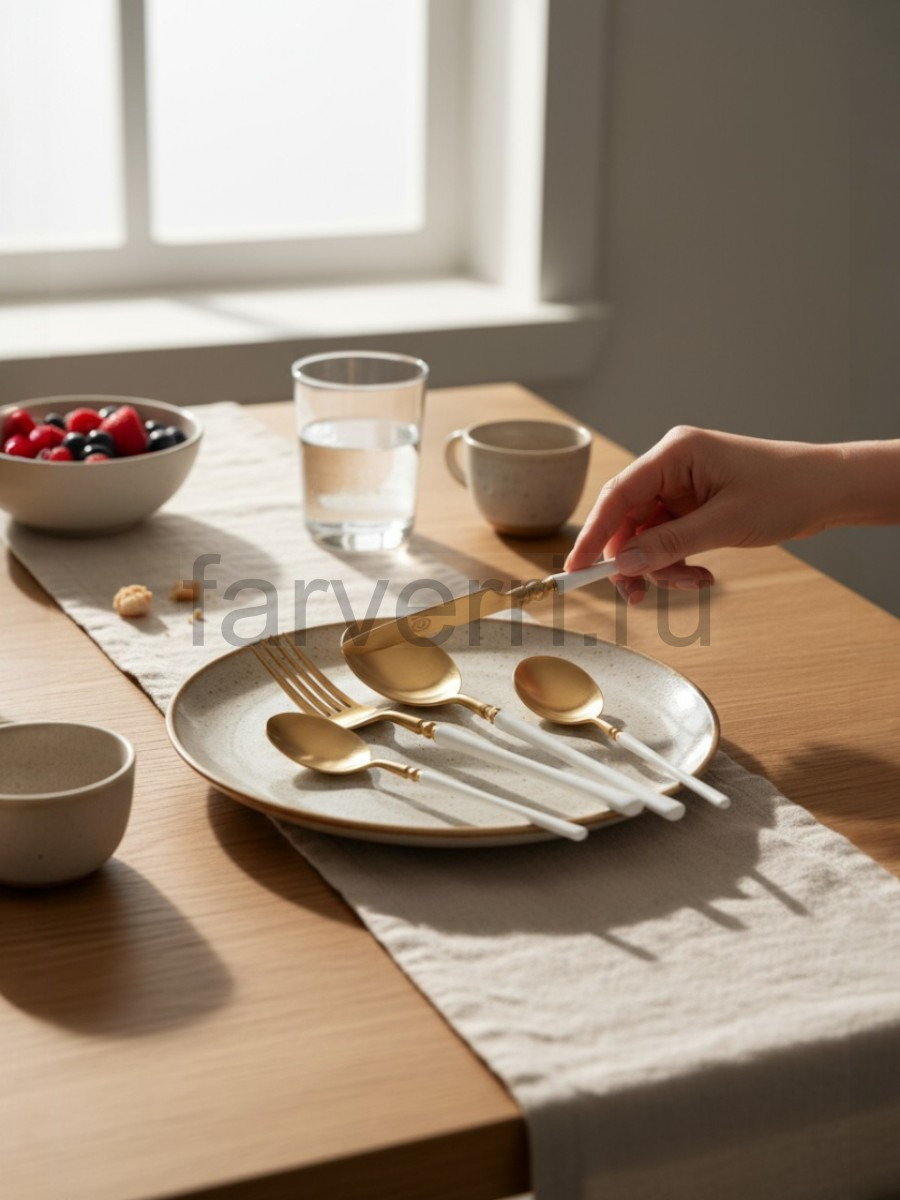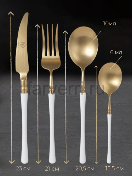 Набор столовых приборов FarVerri - это элегантный и статусный акцент Вашей сервировки, способный моментально внести торжественную нотку в застолье, а также отличный подарок значимым Вам людям.