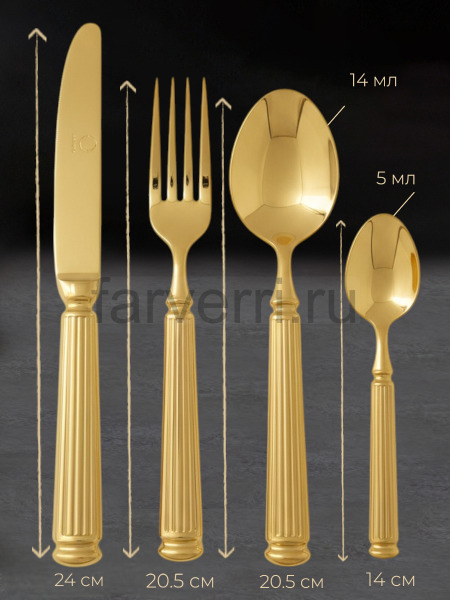 Набор столовых приборов FarVerri - это элегантный и статусный акцент Вашей сервировки, способный моментально внести торжественную нотку в застолье, а также отличный подарок значимым Вам людям.