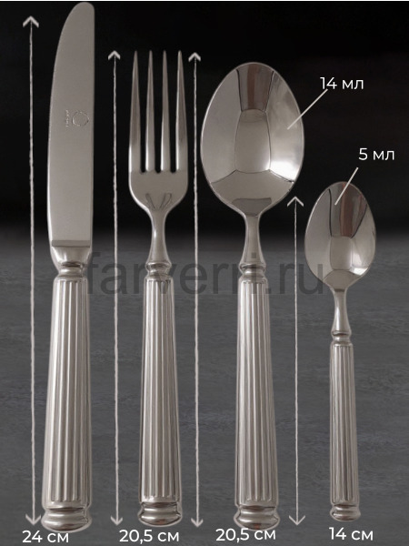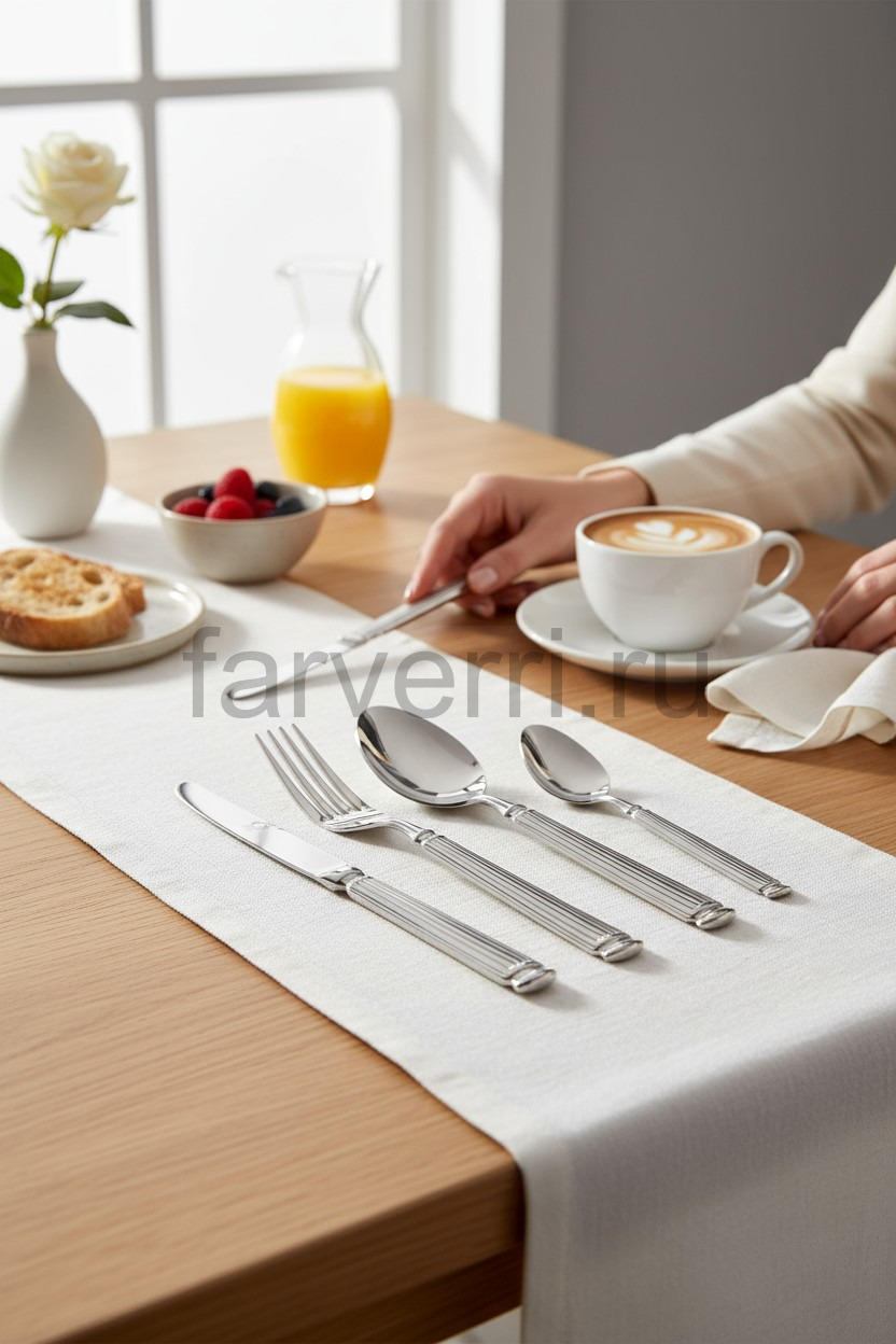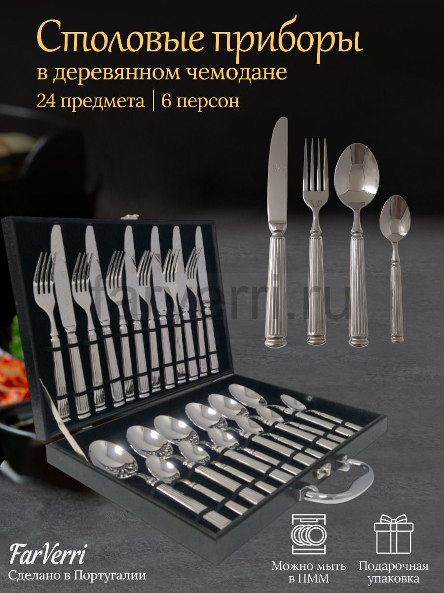 Набор столовых приборов FarVerri - это элегантный и статусный акцент Вашей сервировки, способный моментально внести торжественную нотку в застолье, а также отличный подарок значимым Вам людям.