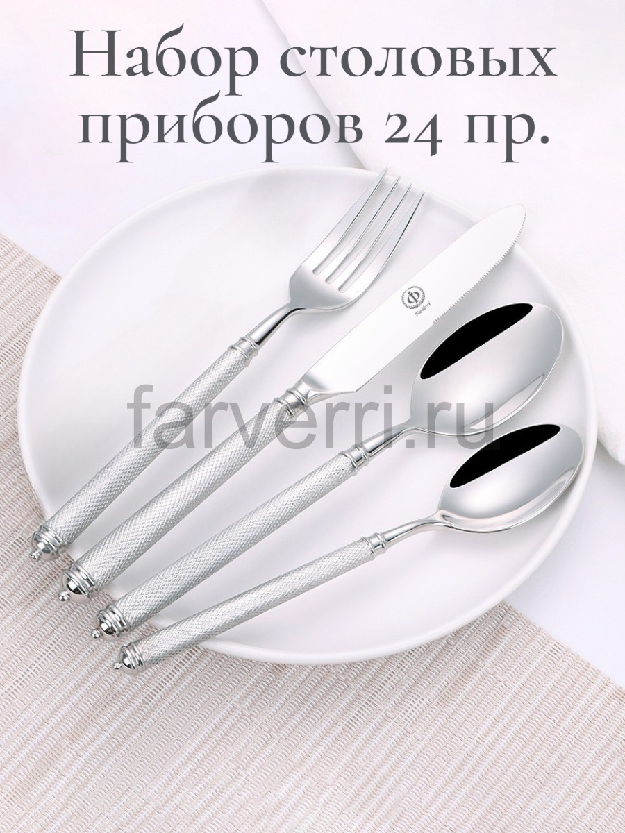 Набор столовых приборов FarVerri - это элегантный и статусный акцент Вашей сервировки, способный моментально внести торжественную нотку в застолье, а также отличный подарок значимым Вам людям.