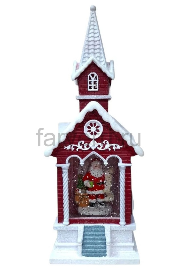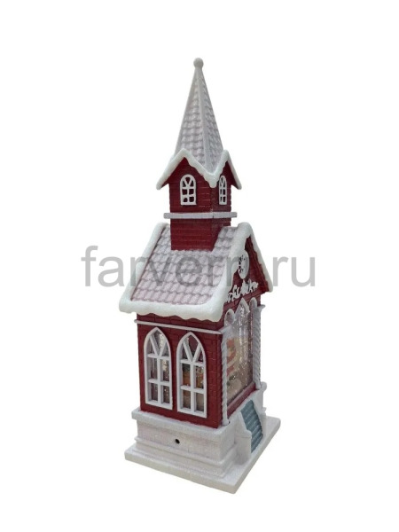 Новогодняя музыкальная фигура-домик красн. с подсветкой